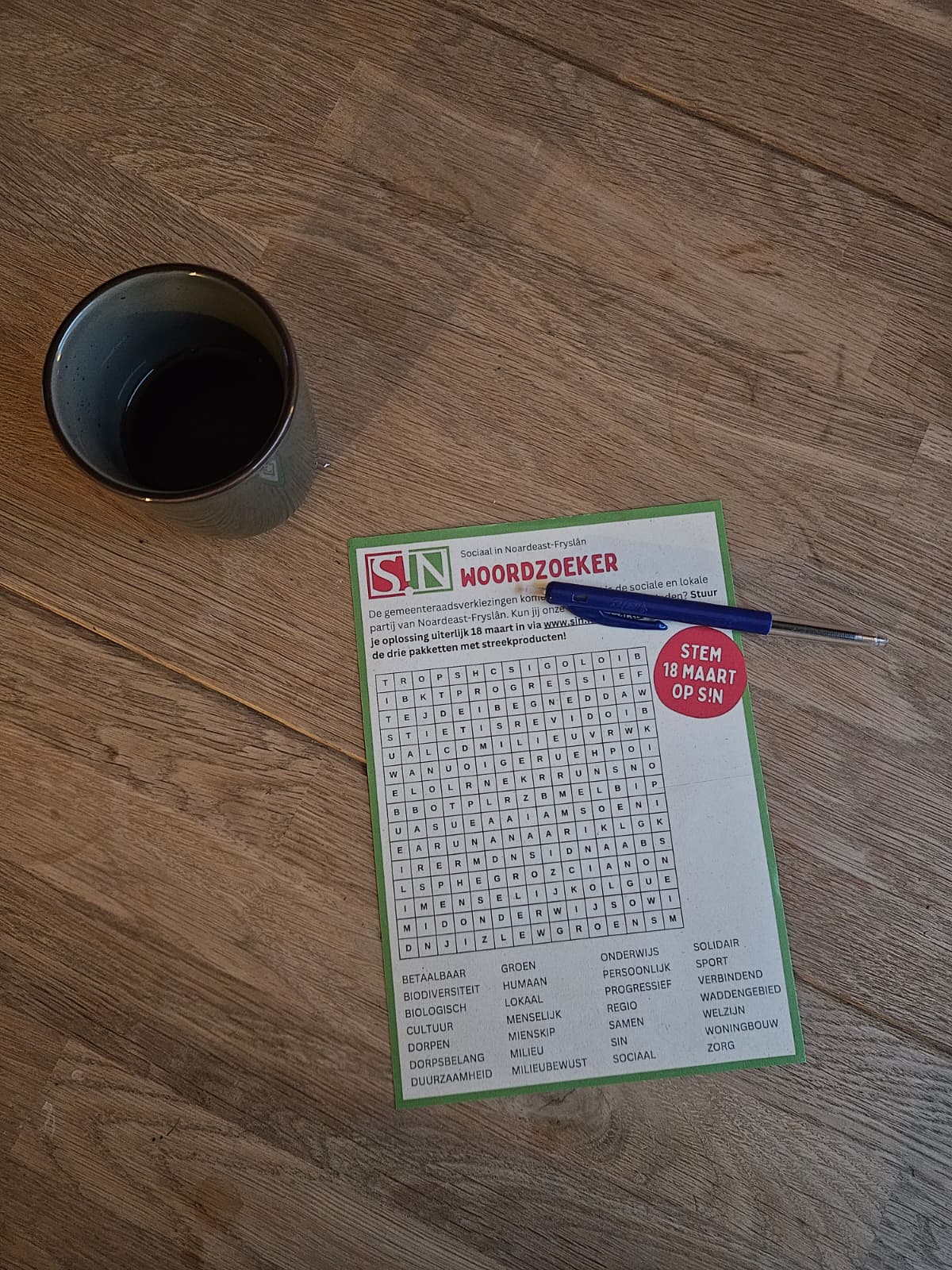 Liever een papieren exemplaar ophalen? Dat kan ook. Je vindt ons met onze bakfiets op verschillende plekken in de gemeente. Kom langs, ga met ons in gesprek, haal een (gratis) kop koffie en neem een woordzoeker mee! Doe jij ook mee?